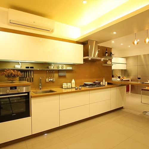 We are the Durable Modern Modular Kitchen Suppliers in Gujarat. Our Modern Modular Kitchens are built to use every inch of the kitchen. Whether the kitchen is compact or the open-plan kitchen is spacious, our designs produce efficient layouts that don’t sacrifice an uncluttered worktop. Galley kitchen designs, L-shape kitchens, and center kitchen islands are built to deliver unobtrusive workflow along with smart storage. Pull-outs in the corners, hidden storage, and tall storage units are some of the aspects that ensure our modern kitchens are ideal for multitasking and keeping every item within an arm’s length. Materials used in our Modern Modular Kitchens are chosen to deliver modern looks but are also robust. High-gloss acrylic to produce a bright look to matte-laminate finishes and texture to produce sleek modern designs are some of the options our kitchens offer. We also include materials like glass, aluminum, and steel to produce futuristic designs. The finishes are low maintenance, scratch-resistant, and strong enough to withstand the daily usage that comes with cooking.